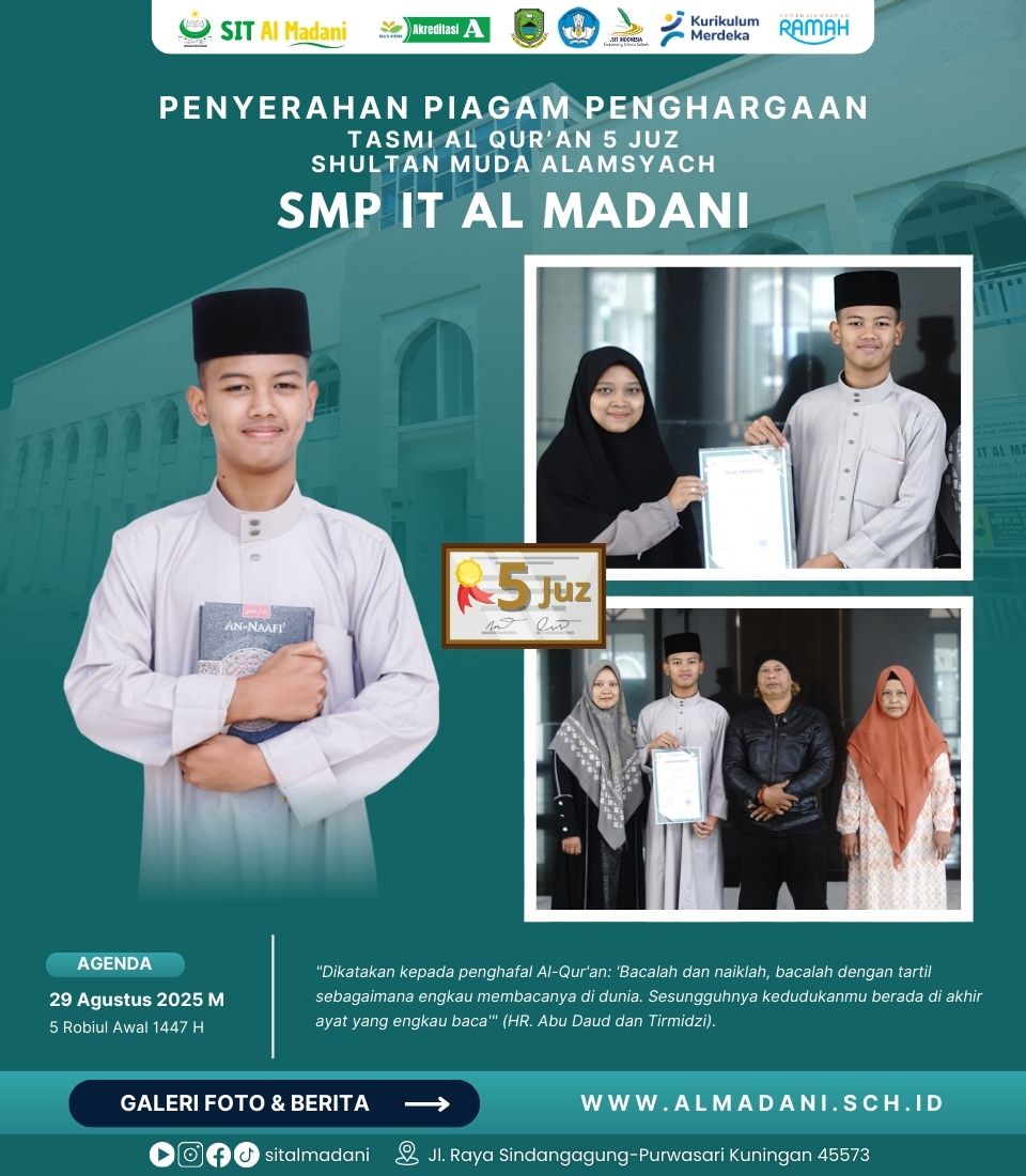 Penyerahan Piagam Penghargaan Tasmi Al Qur’an 5 Juz, Shultan Muda Alamsyach